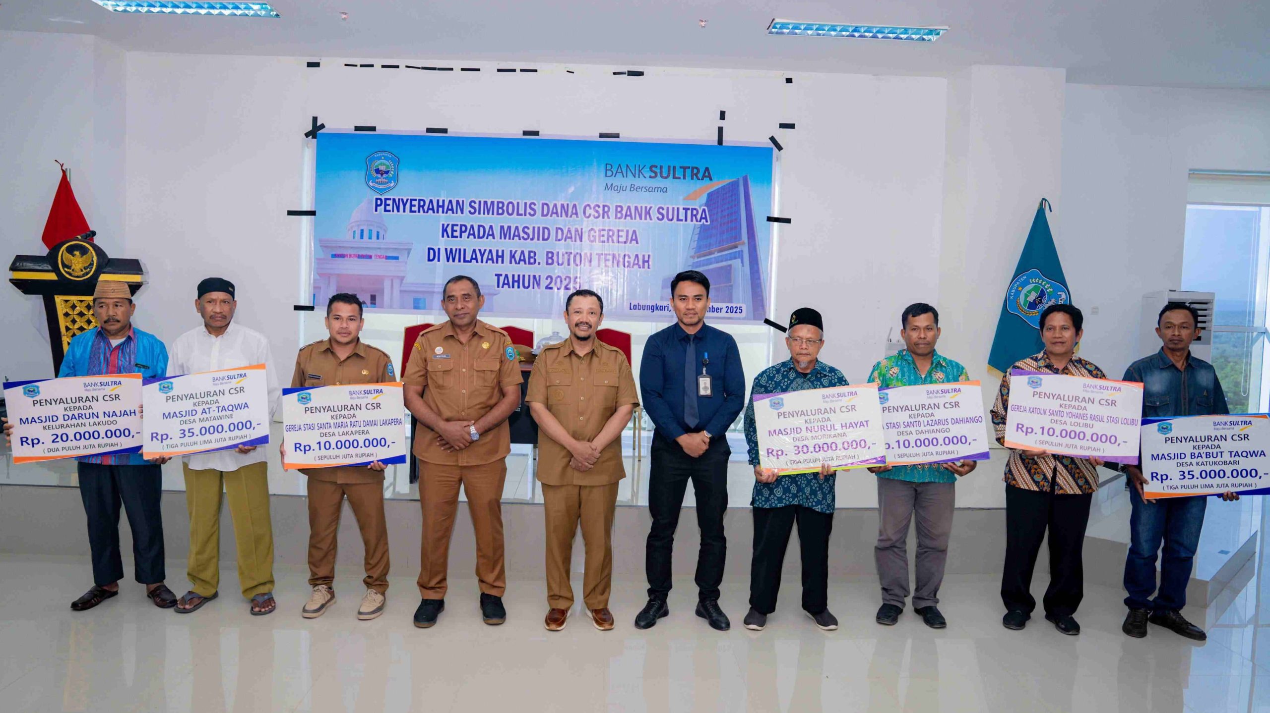 Portal.id, BUTON TENGAH – Bank Sultra menyalurkan dana Corporate Social Responsibility (CSR) untuk mendukung pembangunan sarana keagamaan di Kabupaten Buton Tengah (Buteng). Bantuan tersebut diberikan kepada sejumlah masjid dan gereja, dengan penyerahan berlangsung di Aula Pancana, Kantor Bupati Buteng, Senin (15/9/2025).