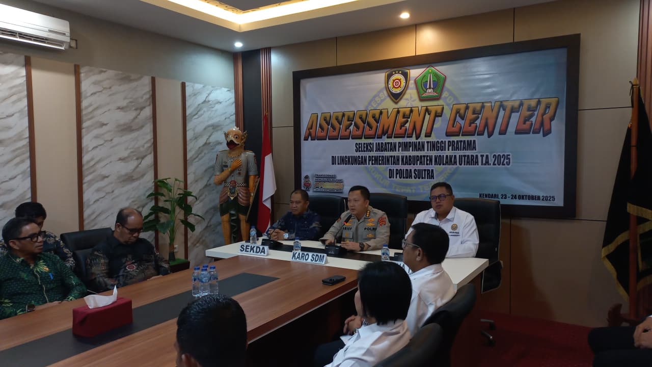 Kendari, 23 Oktober 2025 – Biro Sumber Daya Manusia (SDM) Polda Sulawesi Tenggara (Sultra) menyelenggarakan kegiatan Assessment Center bagi pejabat Pimpinan Tinggi Pratama Pemerintah Kabupaten (Pemkab) Kolaka Utara Tahun 2025. Kegiatan berlangsung di Ruang Assessment Center Biro SDM Polda Sultra, Kamis (23/10/2025).
