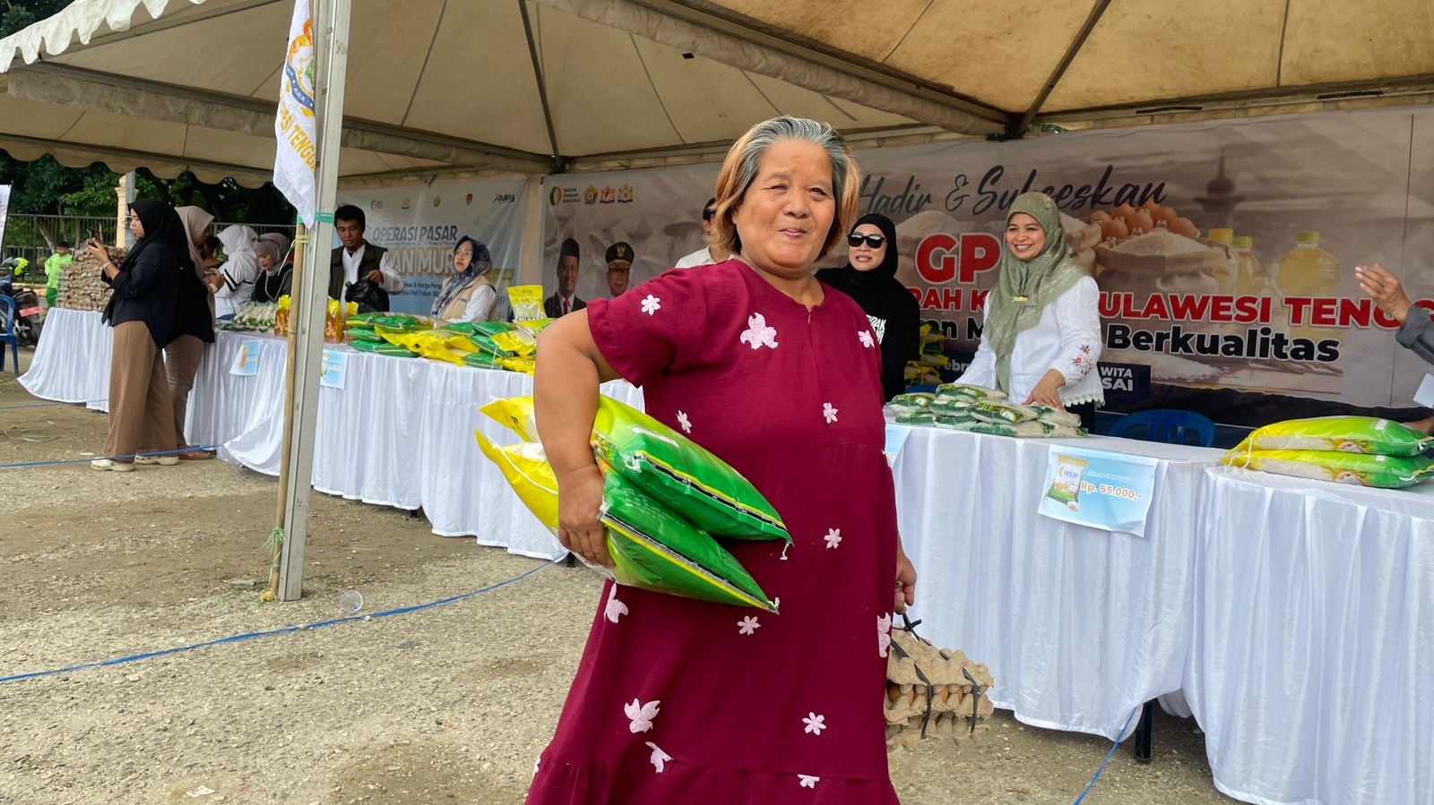 Raut wajah salah seorang warga yang berbelanja di pasar murah yang digelar Kadin Sultra. Foto: Portal.id