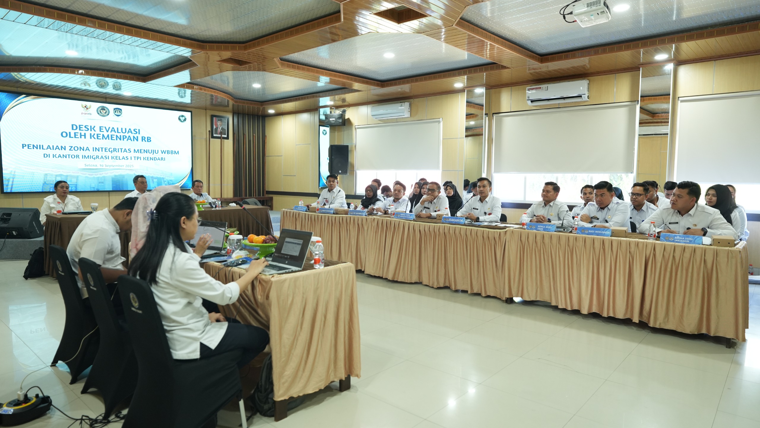 Portal.id, KENDARI — Kantor Imigrasi Kelas I TPI Kendari menjalani desk evaluasi dari Kementerian Pendayagunaan Aparatur Negara dan Reformasi Birokrasi (Kemenpan RB) sebagai bagian dari penilaian Zona Integritas menuju Wilayah Birokrasi Bersih dan Melayani (WBBM), Selasa (16/9/2025).