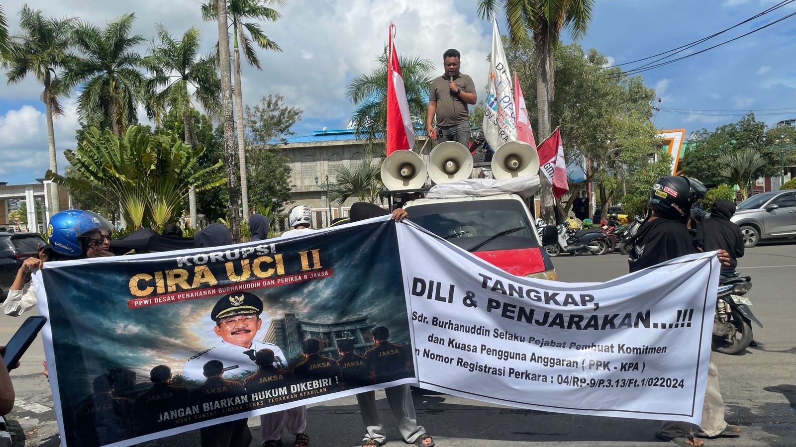 “Kami mempertanyakan integritas penyidik Kejati Sultra dalam menangani perkara ini. Ada tiga nama yang mencuat, lantas mengapa Burhanuddin seolah tak tersentuh?” teriak salah seroang orator dalam aksi tersebut.