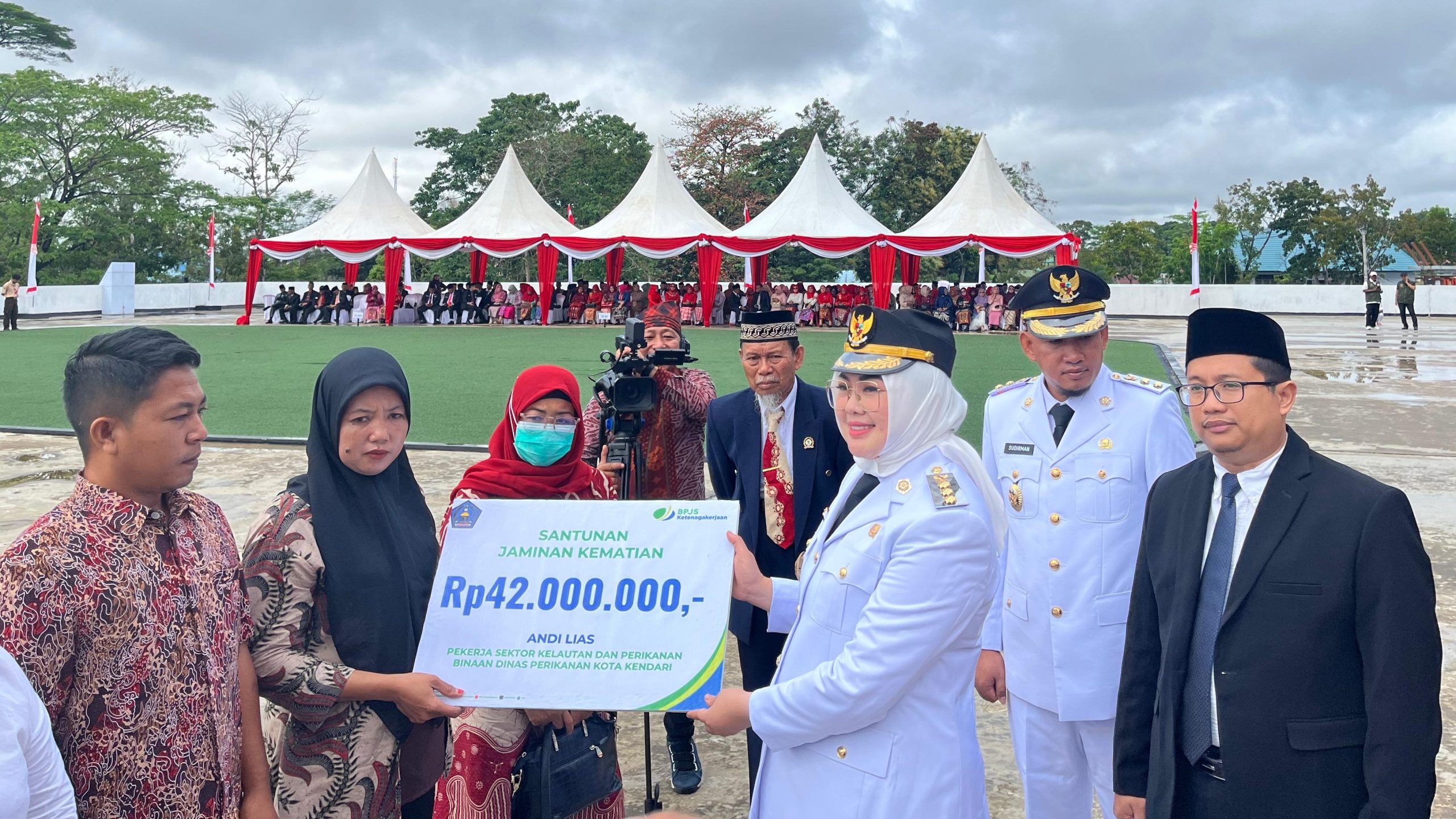 Portal.id, KENDARI – Badan Penyelenggara Jaminan Sosial (BPJS) Ketenagakerjaan Kendari kembali menyerahkan santunan Jaminan Kematian (JKM). Santunan tersebut diserahkan langsung oleh Wali Kota Kendari, Siska Karina Imran pada momen Hari Ulang Tahun (HUT) ke-80 Republik Indonesia (RI), Minggu (17/8/2025). Santunan diberikan kepada tiga keluarga almarhum, dengan total santunan Rp155 juta.