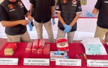 “Sabu seberat kurang lebih 475 gram yang dibungkus kantong plastik warna hitam yang didalamnya dibungkus kantong plastik warna biru yang didalamnya lagi dibungkus kantong plastik warna putih,” jelas Kapolres Didik.