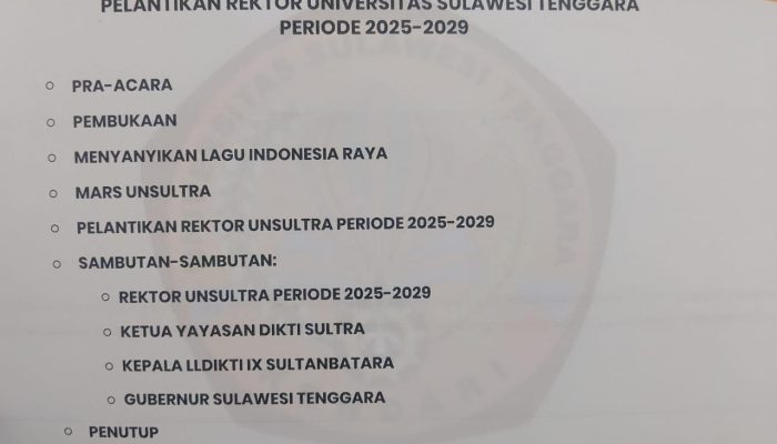Tudingan ini muncul setelah beredarnya undangan resmi agenda Pelantikan Rektor Unsultra Periode 2025 – 2029. Acara tersebut dijadwalkan berlangsung pada Rabu (31/12/2025) di Hotel Claro Kendari. Hal yang menjadi sorotan adalah dicantumkannya nama Gubernur Sultra, Andi Sumangerukka dalam susunan acara untuk memberikan sambutan resmi.